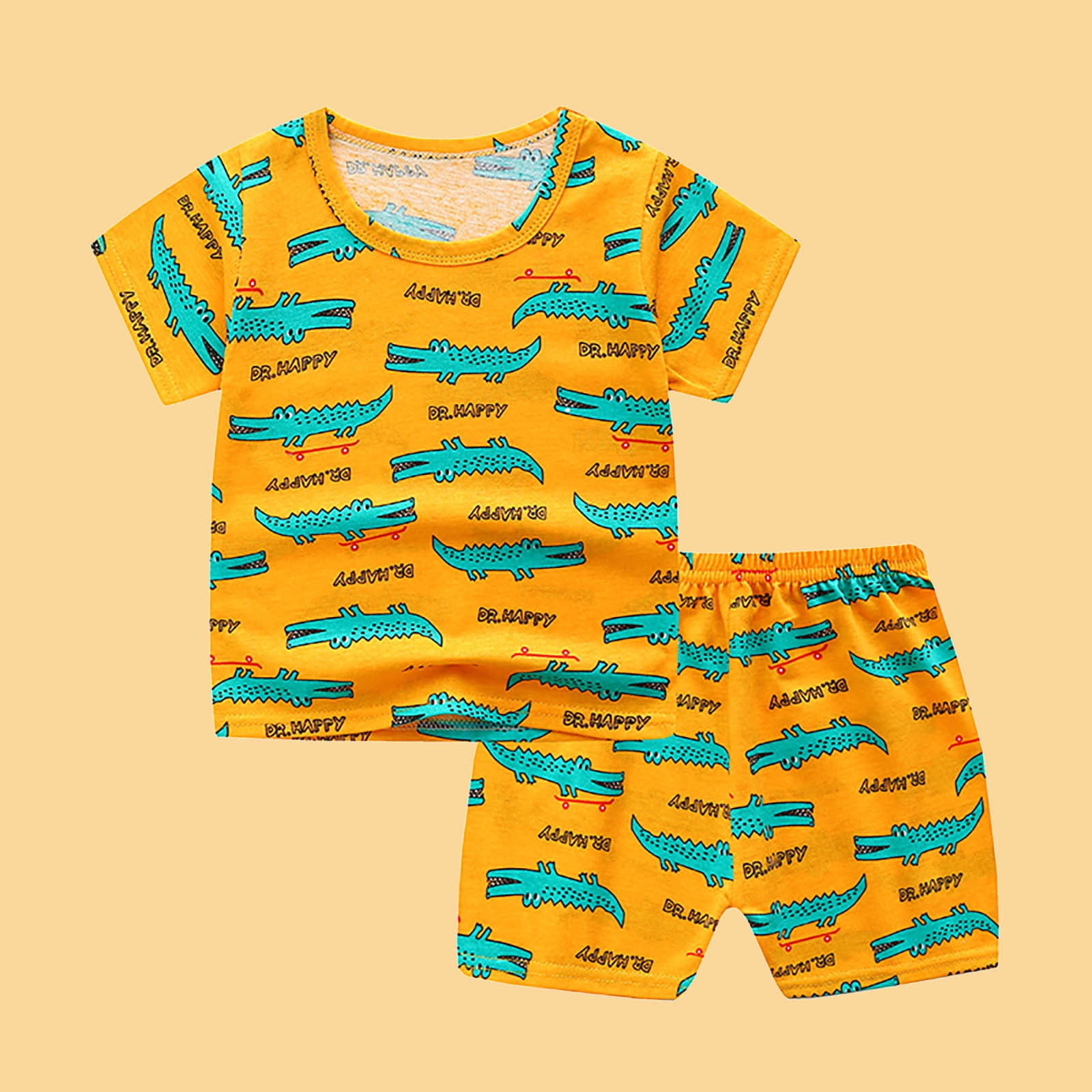 Fesfesfes Toddler Boys Cartoon Print Pattern Short Sleeve Clothes Summer Two Piece Sute Walmart Com